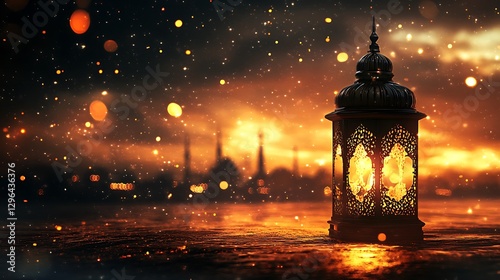 Glowing Lantern at Night, Ramadan Atmosphere