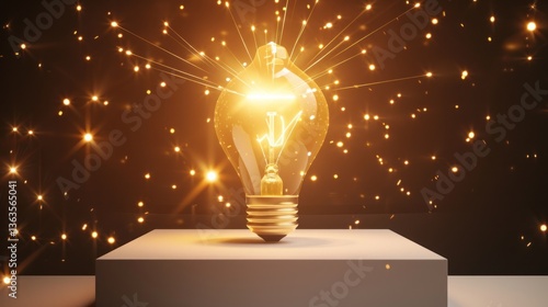 Glowing Light Bulb on a Pedestal with Sparkling Effects