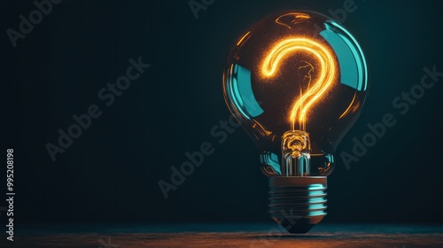 Glowing lightbulb and question mark with copy space for creative thinking idea and problem solving concept.