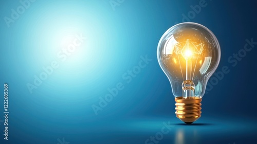 Glowing lightbulb on blue background.