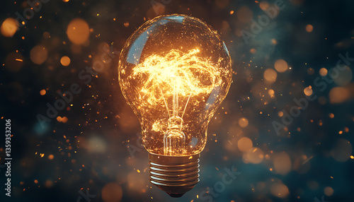 Glowing Lightbulb with Cosmic Energy, Symbolizing Creative Ideas and Innovation Concept Image