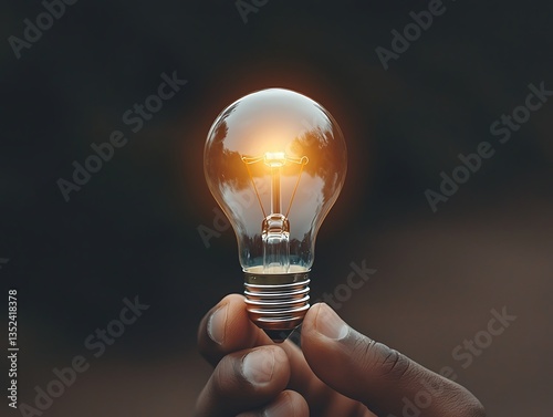 Glowing lightbulb with hand, idea, and dark.