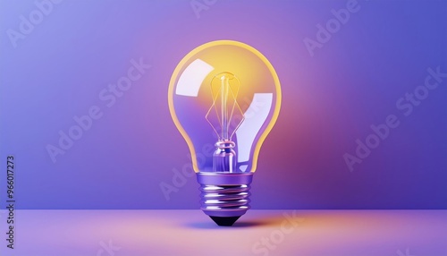 Glowing lightbulb with warm yellow light on purple background, representing innovation, creativity, and bright ideas in modern design concepts.