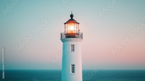 Glowing Lighthouse Under Vibrant Sky at Dusk by the Ocean