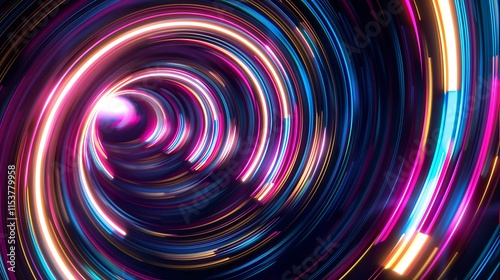 Glowing lines form a circular pattern with motion blur, creating a seamless 360-degree panoramic effect. Dynamic, abstract, and futuristic.