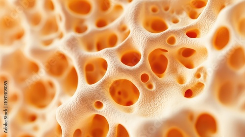 Glowing luminous bone cells illuminated by calcium rich foods and vitamin supplements highlighting the nourishment and health benefits for the skeletal structure