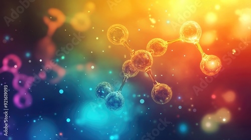 Glowing molecular interactions with vibrant colors, featuring a designated area for text