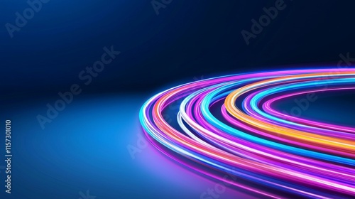 Glowing multicolored digital lines in a dark space, with neon energy motion on a black background. This cyberspace is filled with fast light trails, symbolizing tech, spectrum, color, and data.