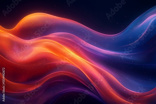 Glowing multicolored waves of light move on a dark background