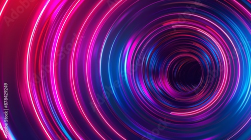 Glowing neon circles swirl in a vibrant tunnel, creating a modern and futuristic design. Perfect for contemporary wallpaper or art decoration