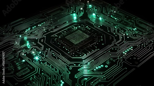 Glowing Neon Circuit Board Pattern on Black Background