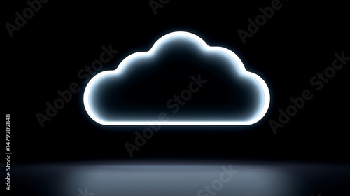 Glowing Neon Cloud Icon with Digital Storage, and Dark Background.