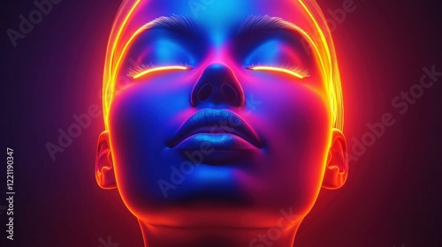 Glowing Neon Female Face with Closed Eyes, vibrant colors in a dark backdrop Generated AI