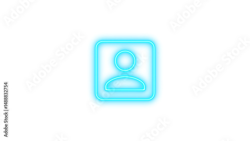 Glowing neon icon of a person inside a rounded square frame, set against a dark background, symbolizing user profile or account settings