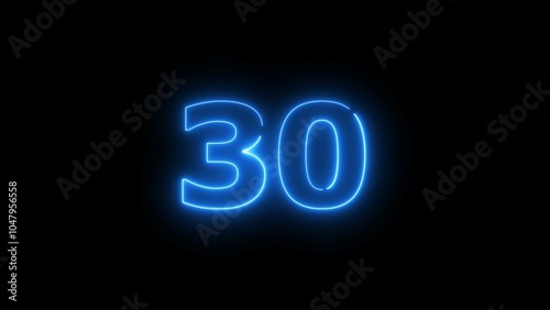 Glowing neon light countdown 30 number illustration background 4k.