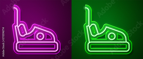 Glowing neon line Bumper car icon isolated on purple and green background. Amusement park. Childrens entertainment playground, recreation park. Vector.
