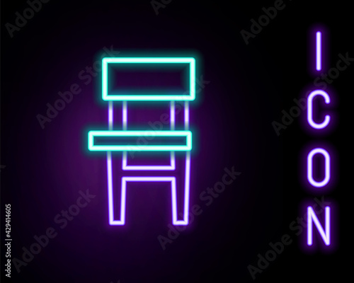 Glowing neon line Chair icon isolated on black background. Colorful outline concept. Vector