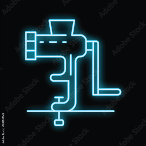Glowing neon line meat grinder icon isolated on black background. Vector