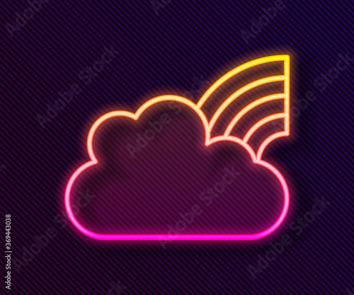 Glowing neon line Rainbow with clouds icon isolated on black background. Vector.