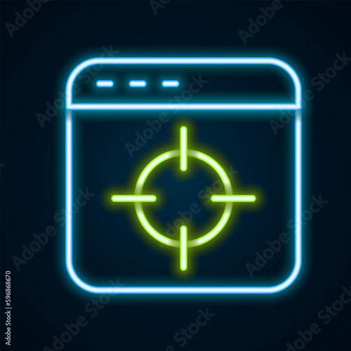 Glowing neon line Target financial goal concept icon isolated on black background. Symbolic goals achievement, success. Colorful outline concept. Vector