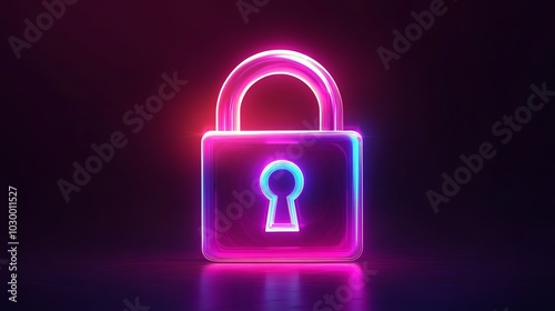 Glowing neon lock icon, vivid padlock outline. Protects personal data, ensures cyber security, and offers reliable storage solutions. Icon set, sign, pictogram.