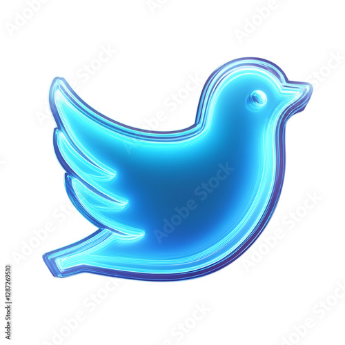 Glowing Neon Twitter Bird Icon with Vibrant Cyan Isolated on Transparent Background