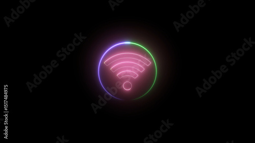 Glowing Neon Wifi Symbol on Black Background Modern Technology and Connectivity Concept vibrant neon wifi