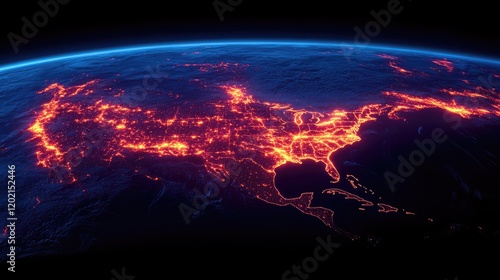 Glowing Networks: Aerial View of North America's Illuminated Night Landscape