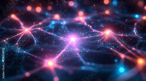 Glowing neural connections illustrating network and synaptic communication in a digital space