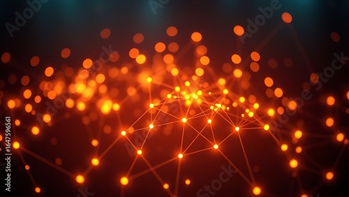 Glowing nodes form abstract data visualization on dark background, conveying futuristic technology concept.