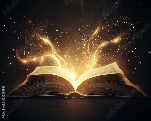 Glowing Open Book Radiating Light and Energy Symbolizing the Start of a New Story