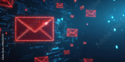 Glowing Orange Envelope Icon in Digital Abstract Design