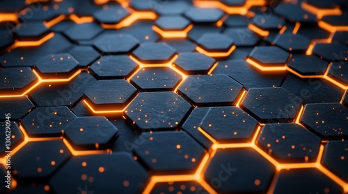 Glowing Orange Hexagon Pattern Abstract Background. AI Generated