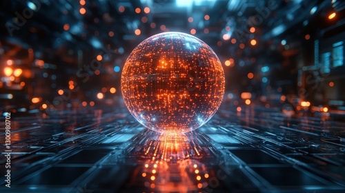Glowing orb on futuristic tech surface