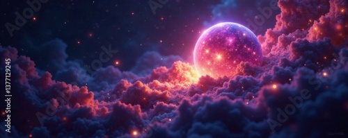 Glowing orb suspended in the depths of a nebula, surrounded by swirling cosmic dust and gas , celestial object, space, ethereal glow