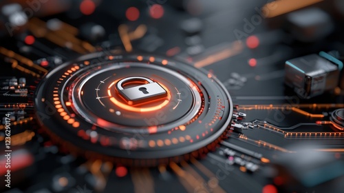 Glowing Padlock Icon at the Center of a Dynamic Digital Landscape A Representation of Cybersecurity Data Protection and Access Control in the Digital Age