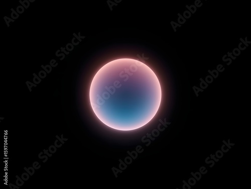 Glowing pink and blue sphere centered on a black background, representing futuristic technology, minimal abstract design, digital art, or cosmic energy and light aesthetics