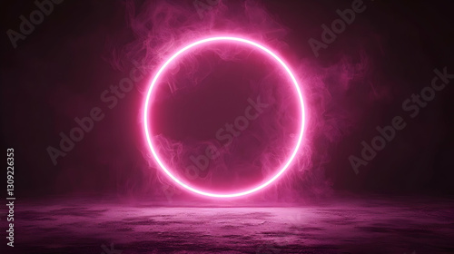 Glowing Pink Neon Circle Floating Above Textured Surface in Dark Abstract Scene