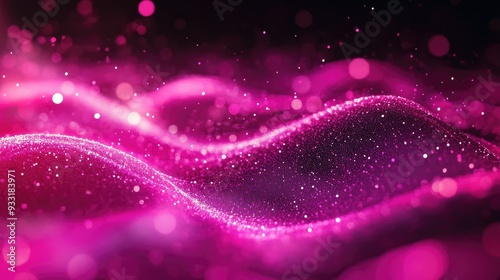 Glowing pink particles form waves, creating an abstract and visually striking digital background.