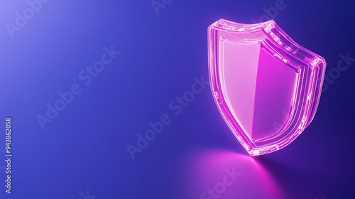 Glowing pink shield on a blue gradient background symbolizing digital security and protection.