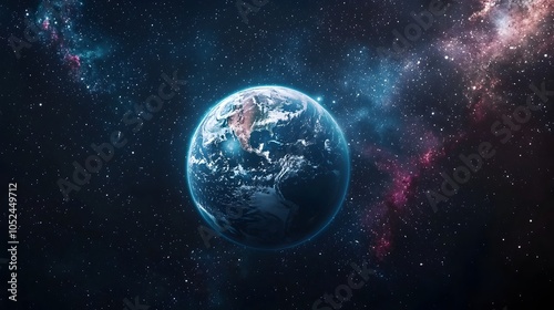 Glowing Planet Earth Surrounded by Vibrant Cosmic Dust and Galaxies in the Darkness of Space