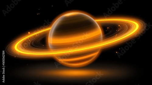 Glowing Planet with Vibrant Rings in Dark Space Background