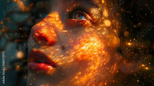 Glowing Portrait: A Woman's Face Bathed in Golden Light