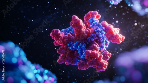 Glowing protein structure in space symbolizes scientific innovation and molecular discovery.