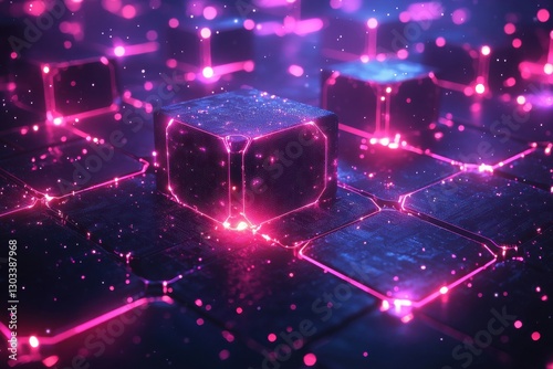 Glowing Purple Data Blocks in a Futuristic Digital Landscape
