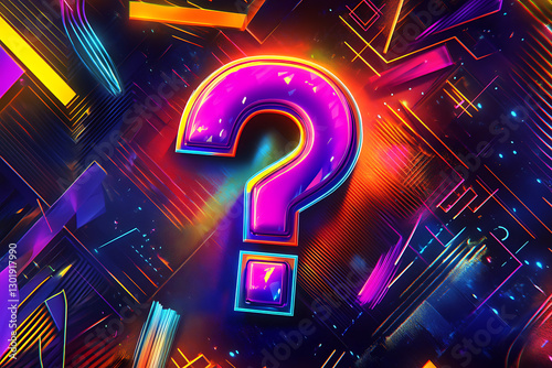 Glowing Purple Question Mark on Vibrant Geometric Background