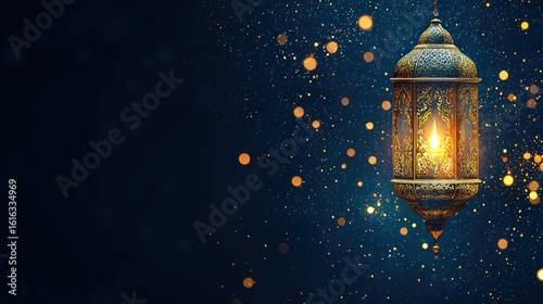 Glowing Ramadan lantern, night, bokeh background, festive celebration, greeting card