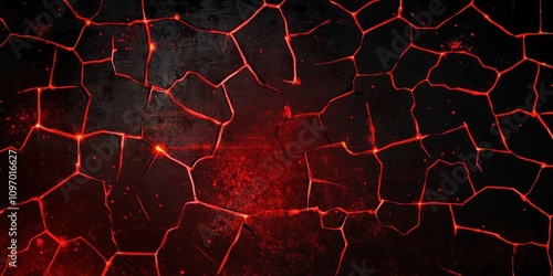 Glowing Red Cracks In Dark Volcanic Rock Surface