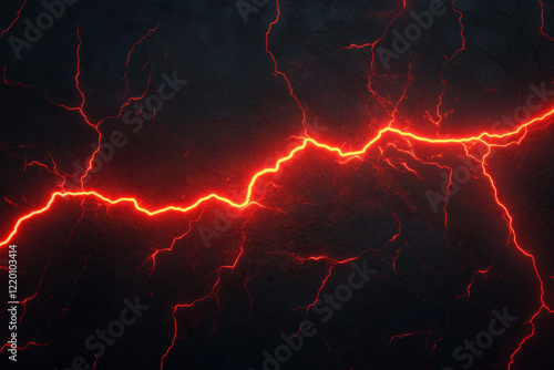 Glowing red lightning bolt illuminating a cracked dark surface