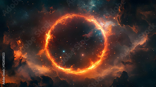 Glowing Ring of Fire in Deep Space with Stars and Nebula Clouds. Generative AI